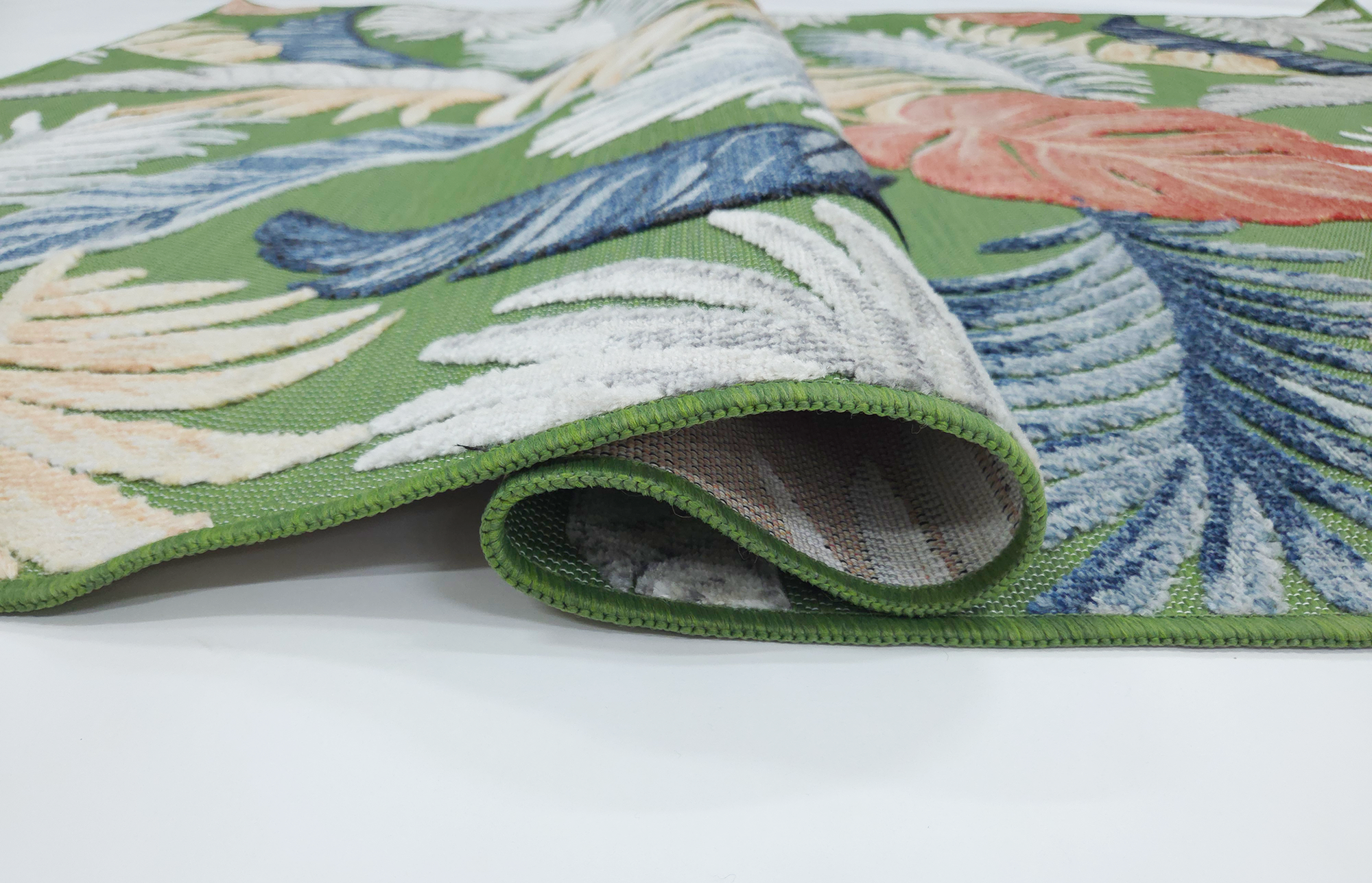 Featuring detailed botanical patterns, this collection adds instant personality to patios, decks, balconies, and alfresco entertaining areas. Its durable construction makes it ideal for outdoor use, while the soft texture and stylish design make it equally stunning indoors.